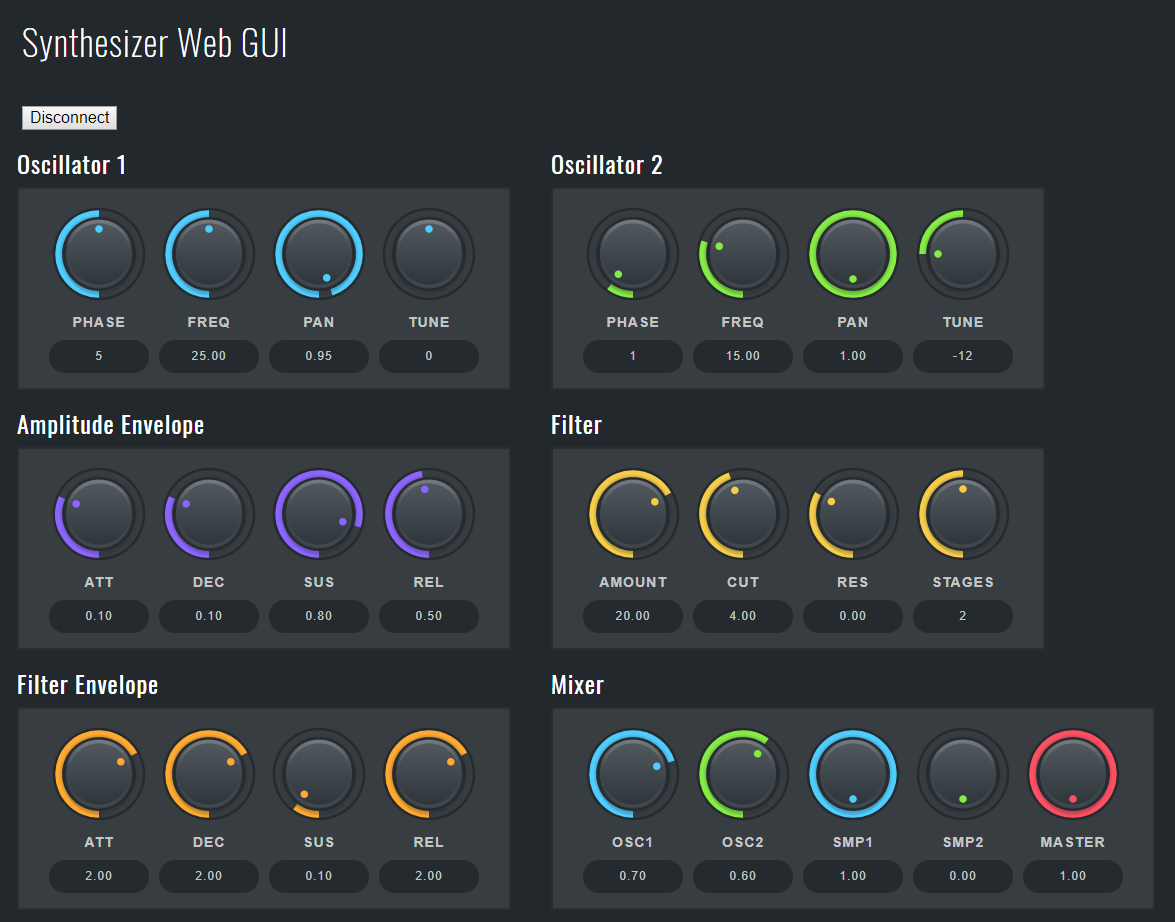 WebSocket-based, browser-hosted GUIs should not be considered a substitute for native GUI implementations in plug-ins, but rather as an interesting option for secondary GUIs which can run on whatever device may be convenient for the user, e.g. a touchscreen tablet in a live performance setting.