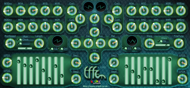 The son of S.F.U.M. arrives... With much use of host sync to bpm and with an unusual filter array effem takes up wher S.F.U.M left off. Much rythmic mayhem and electric fun to be had here. Complete with a full set of 128 presets from vurt, Steven West & blaster78. Many thanks to blaster78 for the demo mp3.