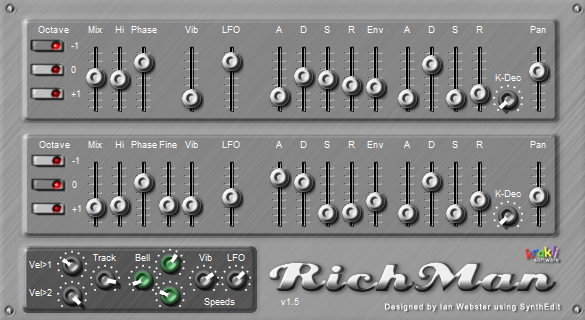 Designed to generate Electronic & Electric piano like tones, but capable of a whole lot more. This one makes a nice companion for Morphiza. Now with minor update to v1.5 with greater range of Track control to soften higher notes and added controls to make higher notes decay shorter if required.