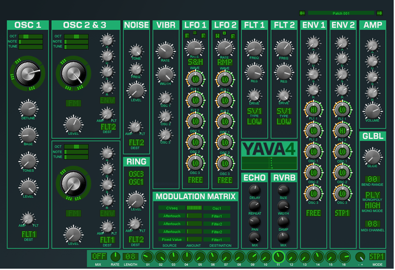 There have been 3 previous YAVAs from Krakli. (YAVA = Yet Another Virtual Analog). The ideas behind the YAVA line is to have different Osciillator types combined with a complex routing through filters, Amps and effects, topped off with a flexible modulation matrix. YAVA4 will need time to get to grips with all its different options but the range of sounds that it can create will repay the effort.